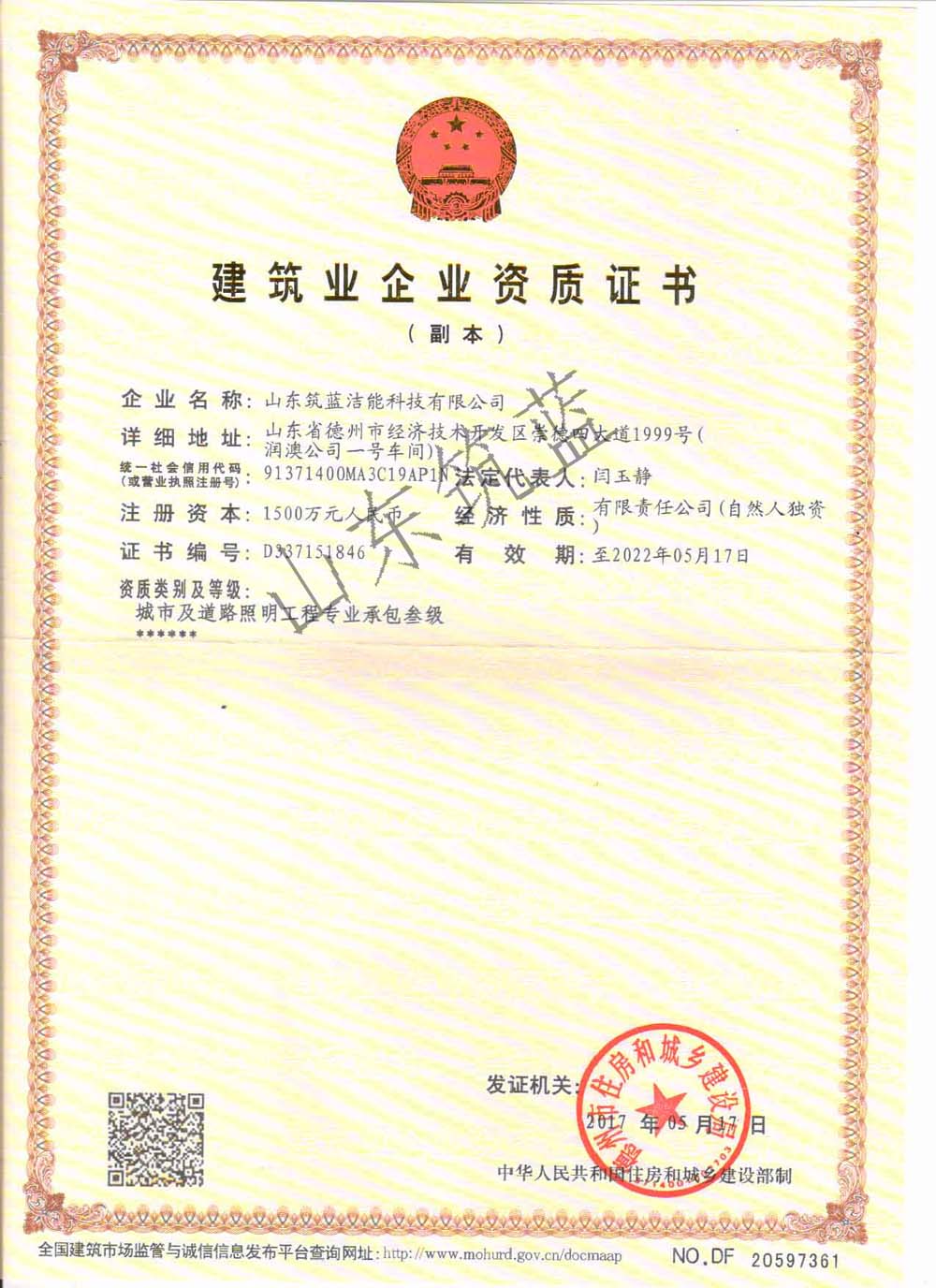 山東筑藍潔能科技有限公司創(chuàng)建于2015年,擁有建筑業(yè)企業(yè)資質(zhì)證書--城市及道路照明工程專業(yè)承包叁級,是一家集設計、生產(chǎn)制造、安裝服務于一體的新能源企業(yè),專業(yè)從事太陽能路燈、LED路燈、高桿燈、庭院燈、景觀燈、中華燈、草坪燈、光伏設備、風能發(fā)電設備的生產(chǎn)及銷售、安裝及售后服務;同時還從事凈水設備、空氣凈化器、光伏采暖設備、燃氣熱水器、機電設備、玻璃鋼制品的銷售、安裝,LED照明及亮化產(chǎn)品、太陽能熱水器、光伏設備及元器件生產(chǎn)、銷售、安裝;建筑裝飾裝修工程施工、兼建筑幕墻工程施工、建筑智能化工程施工等產(chǎn)品專業(yè)生產(chǎn)加工的公司,擁有完整、科學的質(zhì)量管理體系。